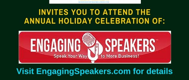 Guess whose holiday party + raffle benefit is news #Roundtown…Engaging Speakers on Dec 11th at Belvedere Banquets in Elk Grove, IL featuring keynote: WGN Anchor Lourdes Duarte. Register + network via speaking to #buildyourbusiness http://ow.ly/VphXu @BENEFICIENCE #PR