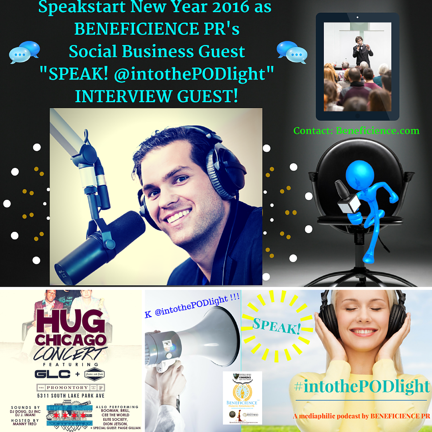 SPEAK! #intothepodlight – A mediaphilic podcast hosted by Tracey Bond – Beneficience.com PR Featuring- Paige Gillian Chicago Voicestress PErforming at The Promontory Tonight @5pm for #HUGChicago Campaign January