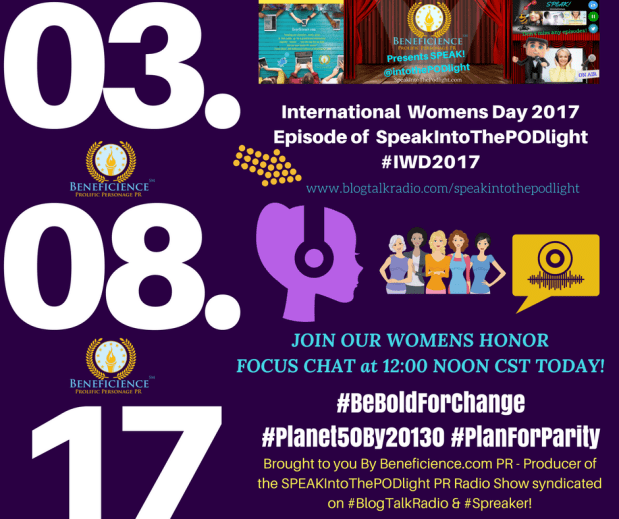 CLICK HERE TO JOIN LIVE for: International Womens Day 2017 (Guest Call-In) Episodes on SpeakIntoThePODlight PR Radio Show #BlogTalkRadio at 111:00am PT/ 2:00pm CST/ 1:00 ET