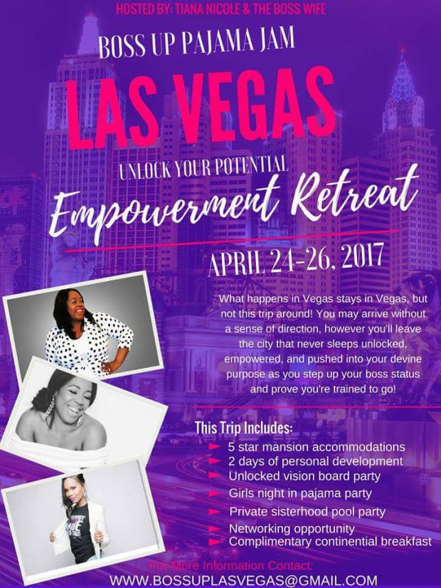 Join Hosts Tiana Nicole and The Boss Wife For The: Boss Up Pajama Jam Empowerment Retreat April 24-26 2017