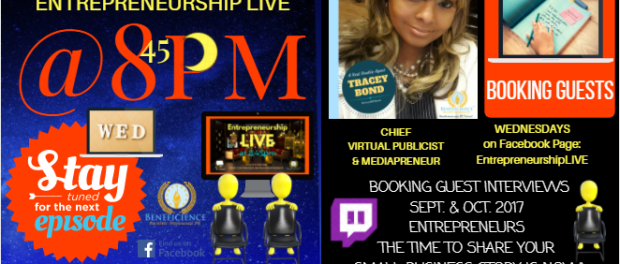 #EntrepreneurshipLIVE @ 8:45pm CT is booking show guests who are Entrepreneurs, Authors, Speakers, Ceo’s & Biz Pros Right Now, Right Now!