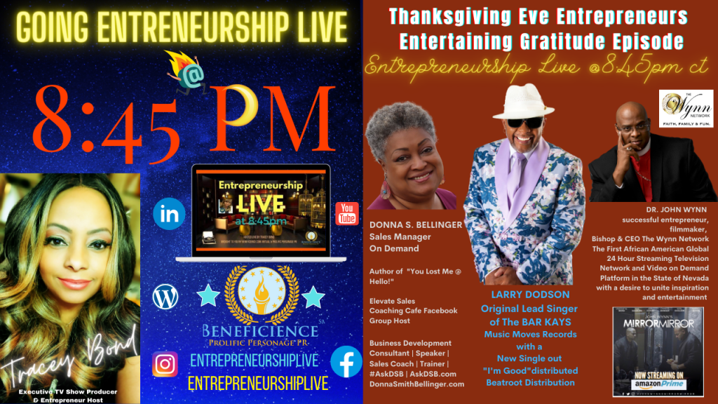 Donna S. Bellinger, The GodMother in Business Sales Expertise – Sales Manager On Demand entertains Gratitude Thanksgiving Week on the Entrepreneurship LIVE Show