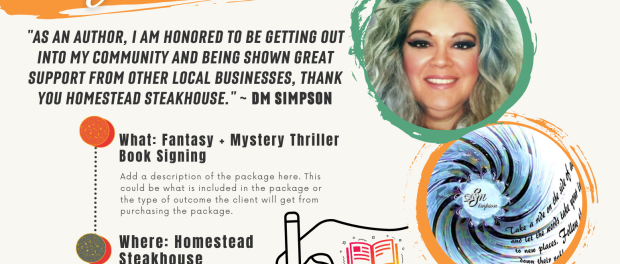 “As an author I am honored to be getting out into my community and being shown great support from other local businesses, Thank you Homestead Steakhouse.”